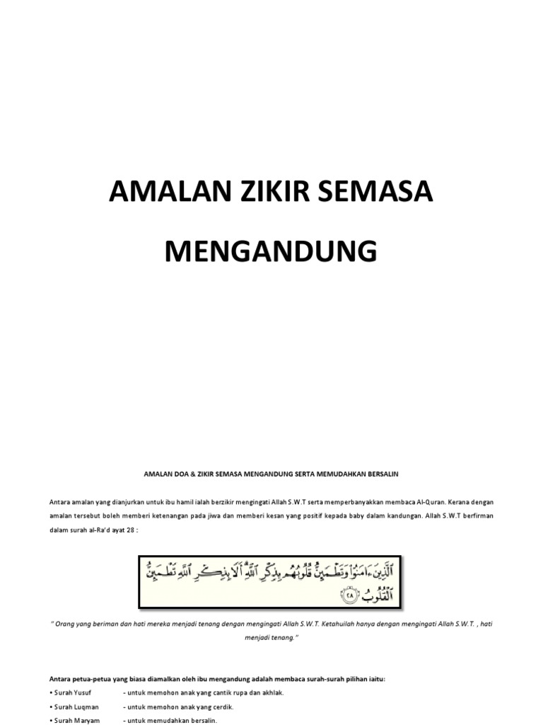Berikut tujuh praktik sukses amalan untuk ibu hamil jasaaqiqah.com. Saat membaca alquran, selain membuat hati tenang, saat melakukannya sebagai salah satu amalan bagi ibu hamil juga dimaksudkan untuk membiasakan anak dengan lantunan ayat suci. Berikut tujuh amalan untuk ibu hamil menurut ajaran islam yang berhasil popmama.com rangkum. Terimakasih dan mohon izin download. Di sini, kami berbesar hati ingin berkongsi maklumat yang diperolehi daripada unit dakwah bil hal, bahagian dakwah, jabatan agama islam johor melalui laman facebook daie media sosial …