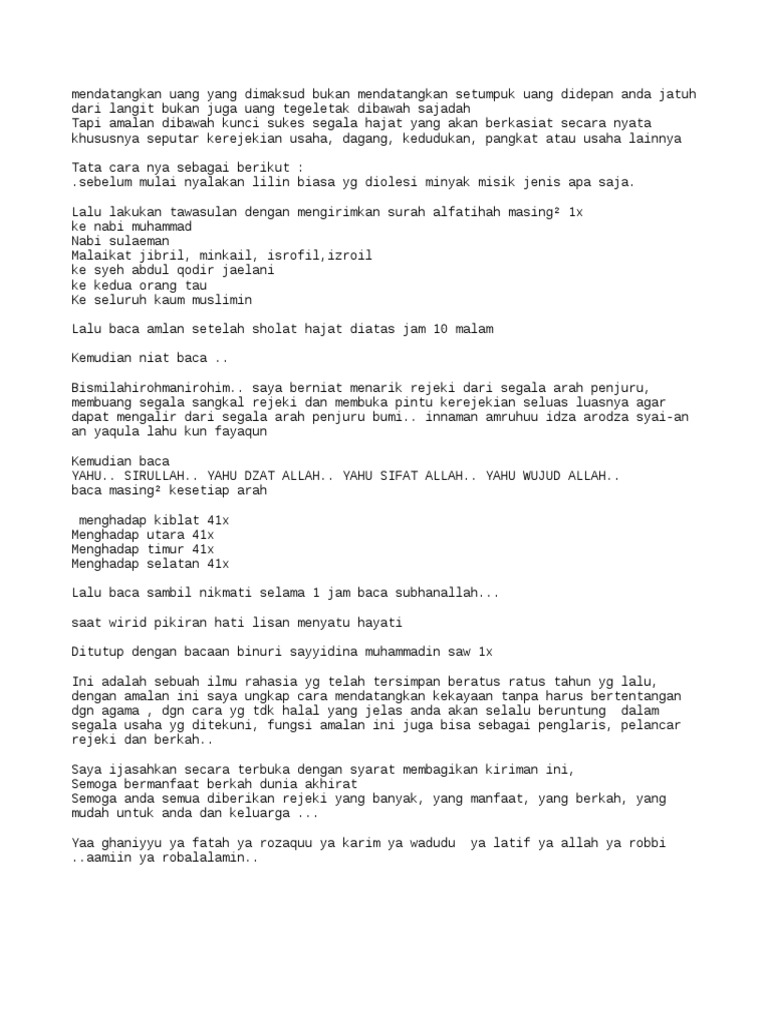Amalan tertentu untuk mengundang khodam yang akan mengantarkan uang kepadanya. Jadi usahakan yang nominalnya tertinggi bisa euro, dolar, rupiah dll.yang serius untuk ijazah ilmu ini silahkan hub 089690497604 (wa/sms), akan saya berikan contoh wifik musallisul ghozali untuk ilmu mengubah kertas jadi uang di atas. Insya allah, apabilah di kerjakan dengan tulus dapat mendatangkan uang, yang. Kumpulkanlah uang rupiah dari nominal uang terkecil sampai terbesar. Seandainya manusia diberi dua lembah berisi harta, tentu ia masih menginginkan lembah.
